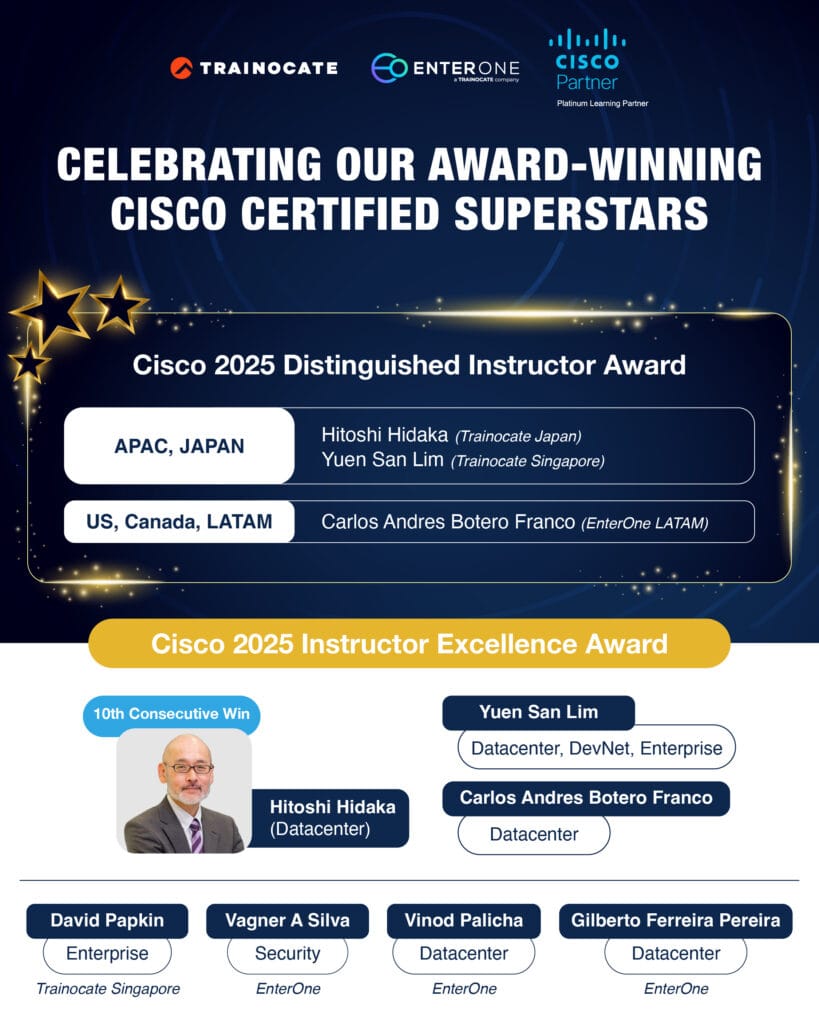 And guess what? All three of them also earned the Cisco 2025 Instructor Excellence Award – with Hitoshi Hidaka securing this honor for an impressive 10th consecutive year!
